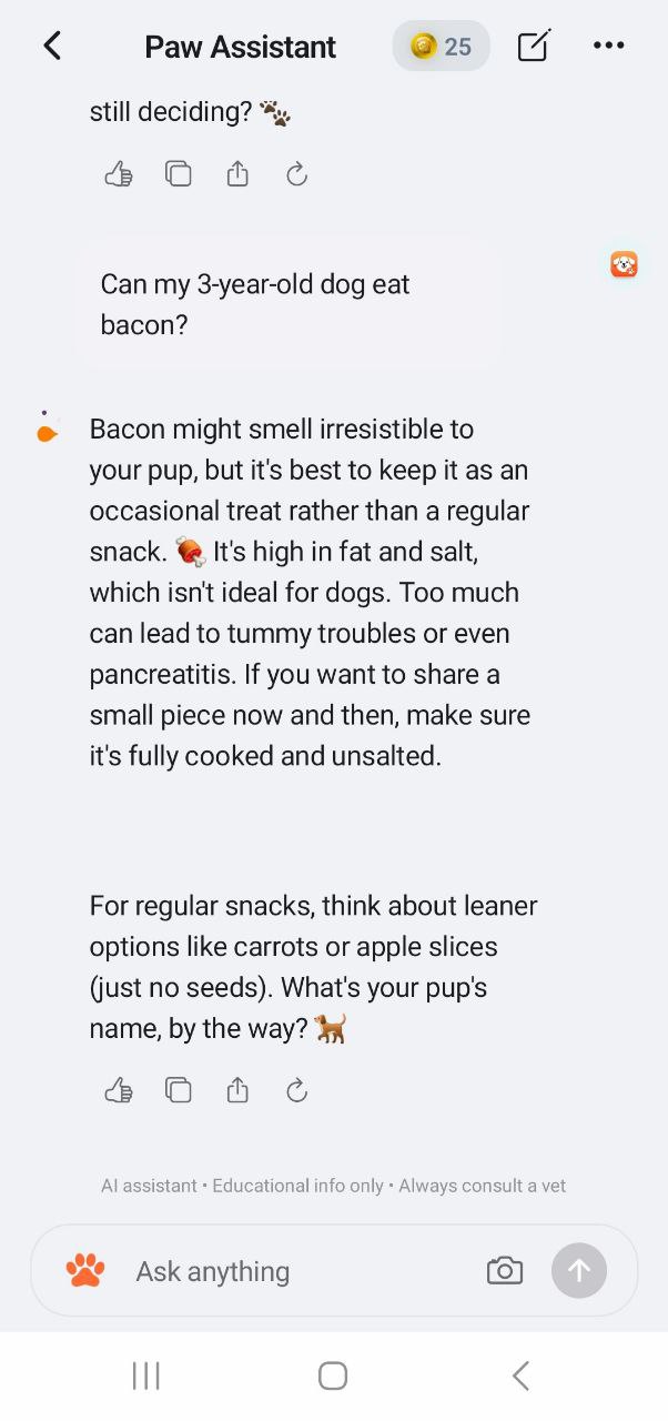 Get instant answers about nutrition, behavior, and well-being. Our AI is trained specifically for pet care.